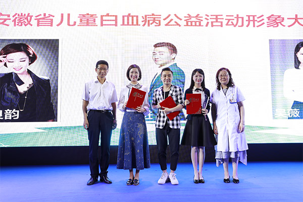 今年的公益晚会上,首次设立安徽省儿童白血病公益活动“形象大使”,聘请著名主持人任良韵、阿进、吴薇担任“形象大使”,二附院党委书记姚文兵、安徽生命小战士会名誉主席王宁玲向三位“形象大使” 颁发证书、奖杯。同时,晚会还现场公布了2018年安徽省儿童白血病公益晚会十大“生命小英雄”、十大爱心单位,与会领导及三位“形象大使”分别为爱心单位和“生命小英雄”颁发证书及奖杯。