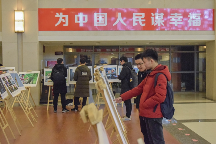 活动中,服务队在我校图书馆一楼大厅展出了140余幅优秀摄影作品,给同学们带来了一场视觉和精神的盛宴。一幅幅作品定格了新中国成立70年来,安徽具有代表性的人物故事和历史瞬间,以“个人、家庭”与“时代、发展”的关系为视角,生动展现在中国共产党领导下安徽取得的辉煌成就,以及江淮儿女追求幸福生活努力奋斗的精神风貌。同学们纷纷驻足欣赏,拍照留念。