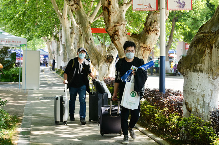 据悉,返校学生在前期进行了严格的网上返校申报,需提交健康信息登记表、健康码”以及14天个人旅行轨迹信息等信息,得到学校审核通过后方可返校。此次返校学生为我校毕业年级和即将实习年级的本科生,共计5317名,将5月12日至14日期间错峰分批返校。(文/学生处 周晓伟 图/新闻中心 殷泽文)