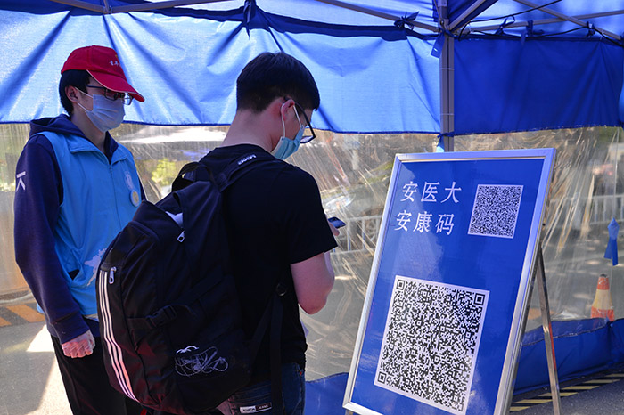 在学校梅山路校区、翡翠路校区大门口,为返校学子开辟的专用通道早早开启。每位学子在工作人员的引导下,出示校园一卡通、身份证,刷一卡通进校,通过体温检测,由工作人员对其随身行李进行消毒。随后,学生们在学院报到处完成健康码查验,领取学生校园防疫须知、宿舍证明、口罩等物资后,经登记、测温后到达宿舍。整个返校报到流程有条不紊,井然有序。