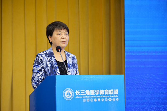 省委省政府高度重视长三角医学教育联盟的建设和发展,王翠凤指出,长三角医学教育联盟是在长三角区域一体化高质量发展战略推进的大背景下应运而生的,联盟理事大会的召开是长三角医学教育协力共建共进、共赢共享的大事要事。发展卫生健康事业在实现“两个一百年”奋斗目标的历史进程中始终处于基础性地位,同国家重大战略紧密衔接,发挥着重要支撑作用。当前,新冠肺炎疫情全球大流行、我国抗击疫情取得重大战略成果,更加凸显了医学教育高质量发展的必要意义和重大意义。