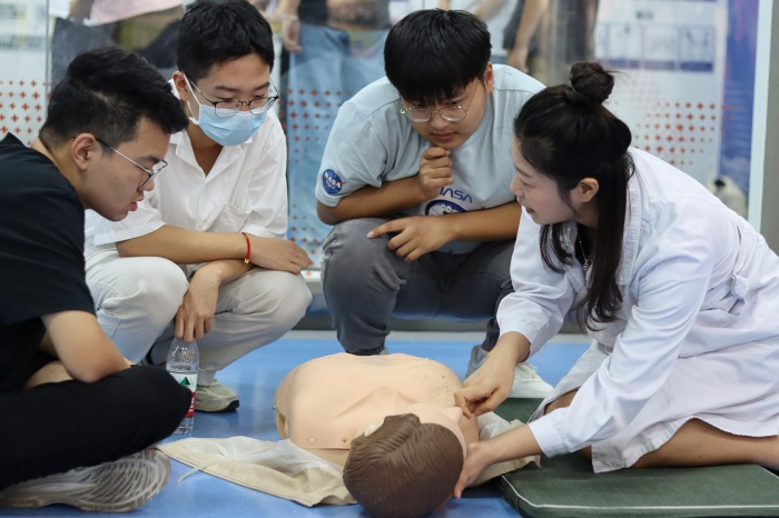 近年来,该校高度重视急救教育工作,始终秉持“以提升学生健康素养为核心,以普及急救知识和技能为重点,以提高校园应急救护能力为目标”的原则,加强应急救护知识普及教育。实验教学中心通过线上及线下课堂教学、集中培训等形式,在学生和教职工中推广心肺复苏急救技术和创伤止血包扎操作方法,近三年培训人数超10000人。积极发挥社会服务功能,组建大学生志愿者及社会实践专项队伍,面向非医学生、社区群众等开展应急救护知识普及培训、救护员培训,年普及培训3000余人次。该中心定期与省红十字应急救护培训中心联合举办培训班,开启了全省红十字应急救护培训的新模式,创建的特色培训模式得到中国红十字总会领导专家的肯定,全国60余所高校前来考察交流,发挥了很好的辐射示范作用。