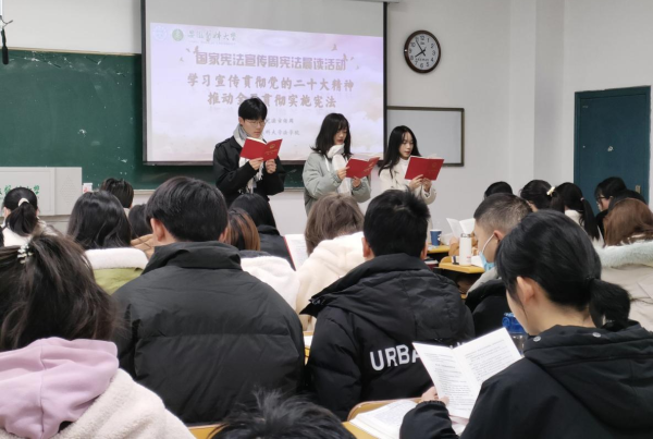 只有铭刻在人们心中的法治,才是真正牢不可破的法治。学校把学深悟透习近平法治思想与当前学习宣传贯彻党的二十大精神紧密结合起来,组建党的二十大精神宣讲团、习近平法治思想宣讲团等,面向广大师生开展对象化、分众化、互动化宣讲,推动党的二十大精神在学校落地生根;成立习近平法治思想研究所,从理论主题、体系框架等多角度学习宣传习近平法治思想中的立场、观点和方法,以研促教,深入推进习近平法治思想和党的二十大精神“进教材、进课堂、进头脑”;成立校研究生思政宣讲员及法治宣讲员队伍,聚焦党史国史、青年榜样故事、法治校园、疫情防控等主题,面向全校本科生和研究生经常性开展面对面、互动性的宣讲交流,为学校思政工作和法治工作的推进实施营造良好氛围。