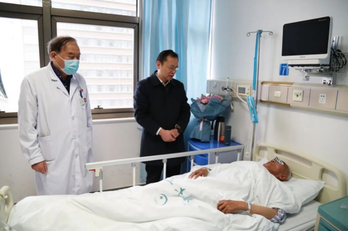 “患者入院后,我们就给他做了全面细致的检查,发现他主要是由于前列腺增生和尿道狭窄引起的排尿困难。”唐亮在接到这位来自雪域高原的老人后非常感动,随即开始着手安排对患者进行细致的身体检查。确定病因后,医护团队立即展开会诊,制定了细致的治疗方案。2月9日,由泌尿外科主任医师、江淮名医于德新教授和唐亮副主任医师协同团队为藏族老人阿巴进行了尿道狭窄内切开手术和前列腺等离子电切手术。手术历时约2个小时顺利结束。术后,患者各项指标恢复平稳,医生告诉阿巴老人和他的儿子,手术非常成功,休息几天后,很快就可以办理出院手续,老人后期随访检查也可以在当地医院完成。“手术做完后,我阿爸的情况好多了,非常感谢医生!”阿巴的儿子激动地说道。在即将康复出院之际,医院执行院长田仰华来到病房慰问老人,代表医院感谢他给予安徽医生的高度信任,并预祝他身体健康。