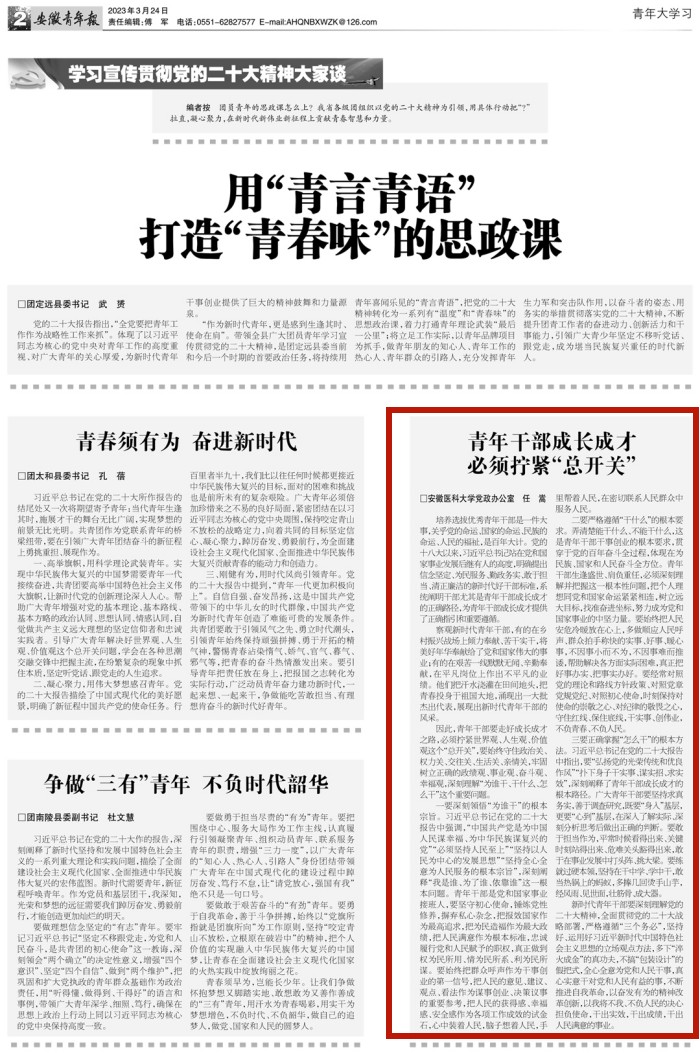 安徽青年报:青年干部成长成才必须拧紧“总开关”