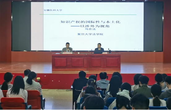 4月18日下午,法学院在南校区怀远楼四楼多功能厅举办第十一期“安医法学论坛”。国家知识产权局专家库专家、复旦大学知识产权研究中心常务副主任马忠法教授担任主讲嘉宾,受邀作了题为《知识产权的国际性与本土化——以涉外为视角》的专题报告。法学院院长马青连主持论坛并致辞,合肥市政协港澳台侨和外事委员会主任王智源出席论坛。