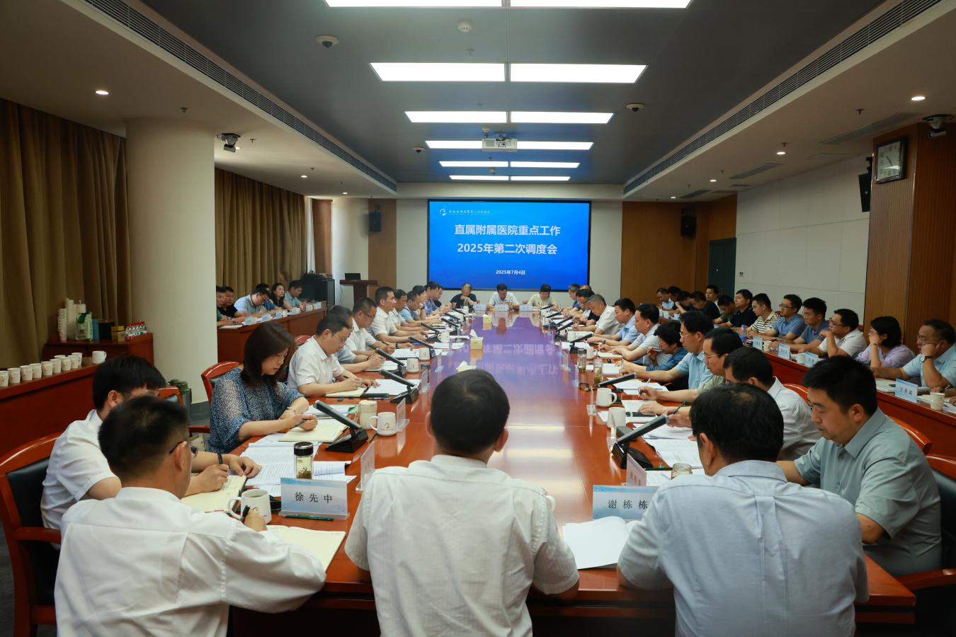 7月4日上午,学校召开直属附属医院重点工作2025年第二次调度会。会议听取第一附属医院、第二附属医院、附属口腔医院、第四附属医院(附属巢湖医院)和第五附属医院(附属阜阳医院)重点调度事项办理进展。校党委书记王琦主持会议并讲话,校领导、校党委常委出席会议。